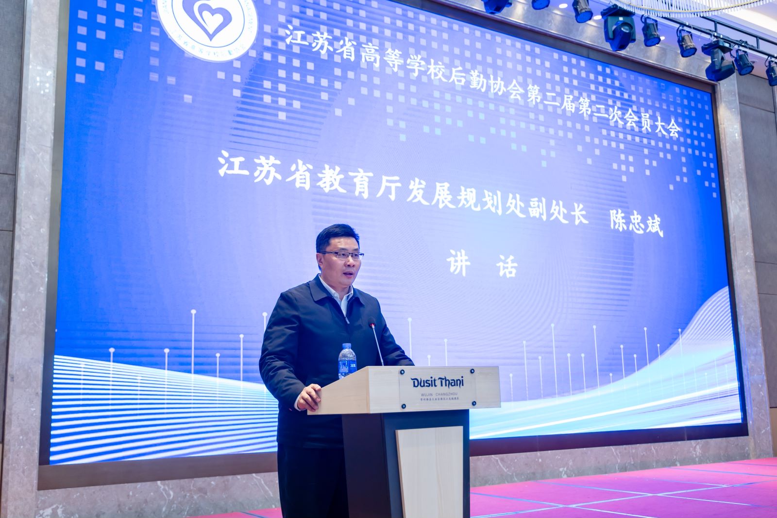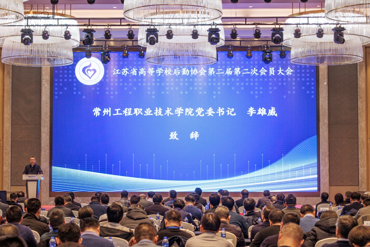 2023年12月27日江苏省高等学校后勤协会第二届第二次会员大会暨高校后勤高质量发展论坛在常州顺利召开。江苏省教育厅副厅长杨树兵发表视频讲话,江苏省教育厅发展规划处副处长陈忠斌、江苏省高校后勤协会会长黄大卫出席会议并讲话。我校党委书记李雄威出席会议并致欢迎辞,党委委员、副校长周勇出席会议。江苏省高校后勤协会会长、副会长、秘书长及全省高校分管后勤工作的校领导、后勤部门负责人及企业代表400余人出席会议。大会由江苏省高等学校后勤协会主办,我校承办,聚焦后勤热点、难点、痛点工作问题,汇聚奋进力量,本次会议在深入贯彻党的二十大精神基础上,积极探索高校后勤发展的新路径,明确了后勤高质量发展的方向。