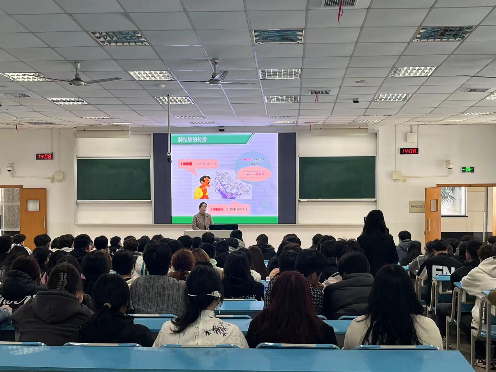 讲座中,姜主任围绕肺结核的常见临床表现、主要传播途径、潜伏感染与筛查手段、日常预防措施等内容展开,学生们踊跃互动,现场氛围良好。通过此次科普讲座的开展,增强了学生的结核病防病意识,对遏制结核病的校内传播起到了积极的作用。(后勤服务部 邱莉/文、摄 张曦/审)