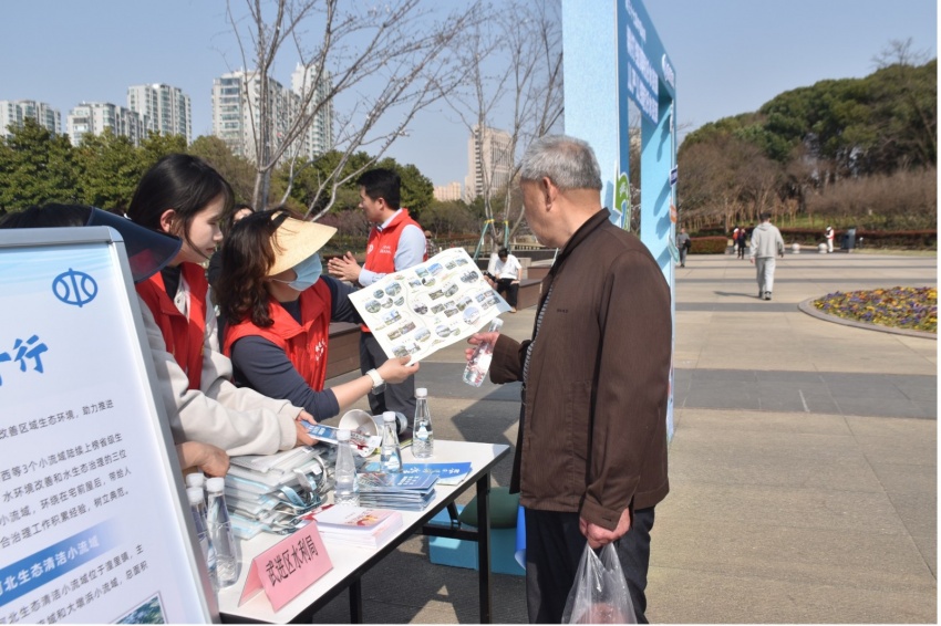 3月22日是第32个世界水日,为响应国家节水号召,武进区水利局在新天地公园南广场举办了“共护母亲湖,绽放滆湖美”水日水周系列科普活动。后勤服务部联合设计学院组织了20余名师生志愿者参与活动。
