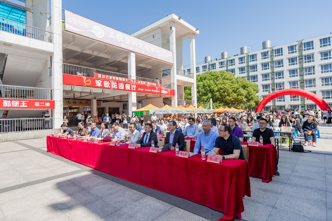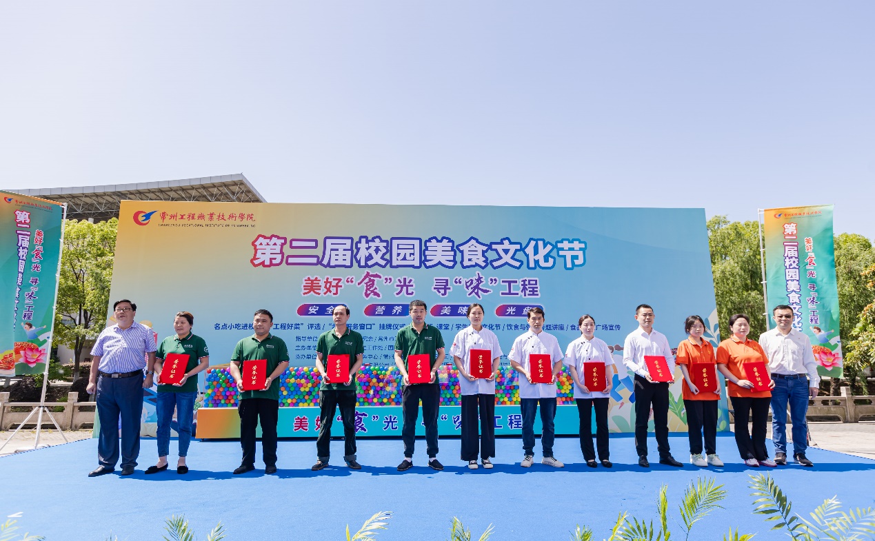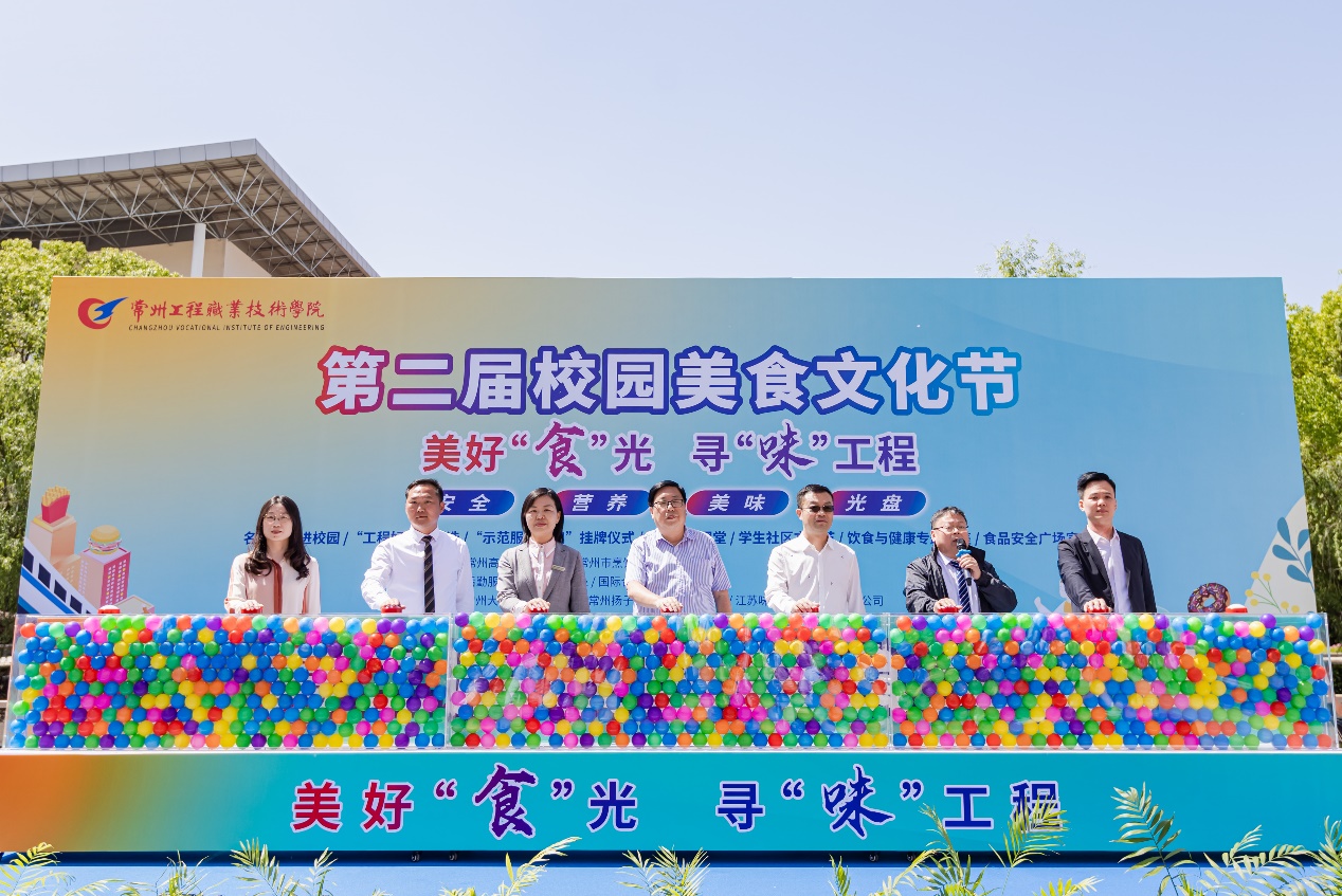 为弘扬中华美食文化,丰富校园文化生活,5月16日上午,我校第二届校园美食文化节在两食堂广场开幕。中共常州市委台湾工作办公室副主任徐栋,常州市烹饪餐饮行业协会执行会长兼秘书长符学平,学校党委委员、副校长周勇,学校党委委员、副校长张雪华,学生工作部、后勤服务部、国际合作交流处、工会、团委、经济管理学院和设计艺术学院等部门负责人,在常高校后勤负责人,相关餐饮企业以及师生代表共200余人出席此次开幕式。