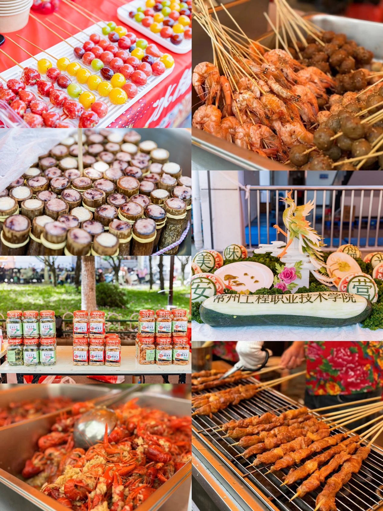 本届美食节共设有“工程”美食、精品菜肴、非遗美食、台湾美食、缅泰美食、中亚美食、茶文化展示、红色美食等67个展位。来自常州大学、常州扬子餐饮管理有限公司、江苏味香来餐饮管理有限公司、南京军歌餐饮管理有限公司、常州智渠餐饮管理有限公司、常州天牧健康科技发展有限公司、野莉芙品牌管理有限公司等高校和餐饮企业的特色风味小吃和拿手菜肴齐集一堂。老常州虾饼、小龙虾、锅包肉、糖葫芦等200余种美食应有尽有;长轩麻糕、萝卜丝酥饼、干菜酥饼等非遗美食广受欢迎;鸡蛋仔、凤梨酥、绿豆糕等台湾美食齐集一堂;泰式奶茶、茶叶沙拉等东南亚美食人气高涨;延安美食、茶艺表演大受好评。