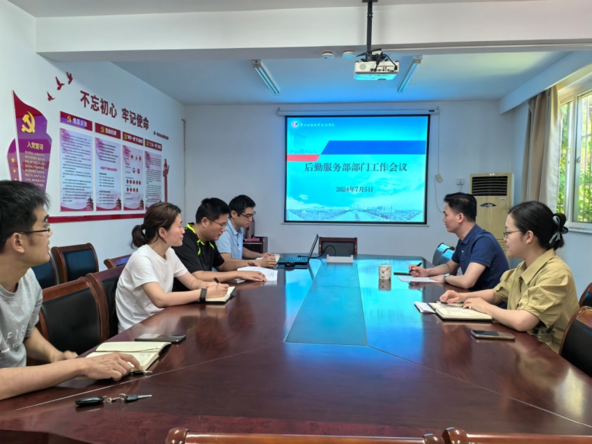 2024年7月5日上午,后勤服务部部长周晓东在部会议室主持召开学期工作总结暨暑期工作部署会。后勤部副部长张曦和各科室负责人参加了会议。