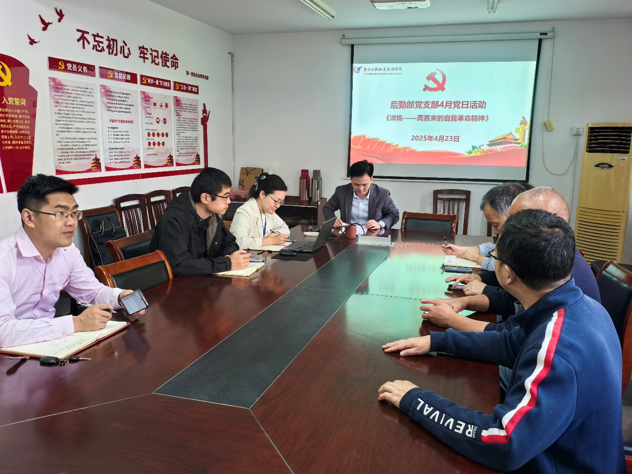 理论学习强根基。4月23日,支部组织全体党员集中观看第十七届全国党员教育电视片观摩交流活动获奖作品《淬炼——周恩来的自我革命精神》。影片生动展现了周恩来同志“要与自己的他人的一切不正确的思想意识作原则上坚决的斗争”的革命精神。观影后,党员们围绕"新时代如何弘扬自我革命精神"展开热烈讨论。大家一致表示,要以周恩来同志为榜样,始终保持刀刃向内的勇气,在服务师生的工作实践中不断自我革新、自我提升。