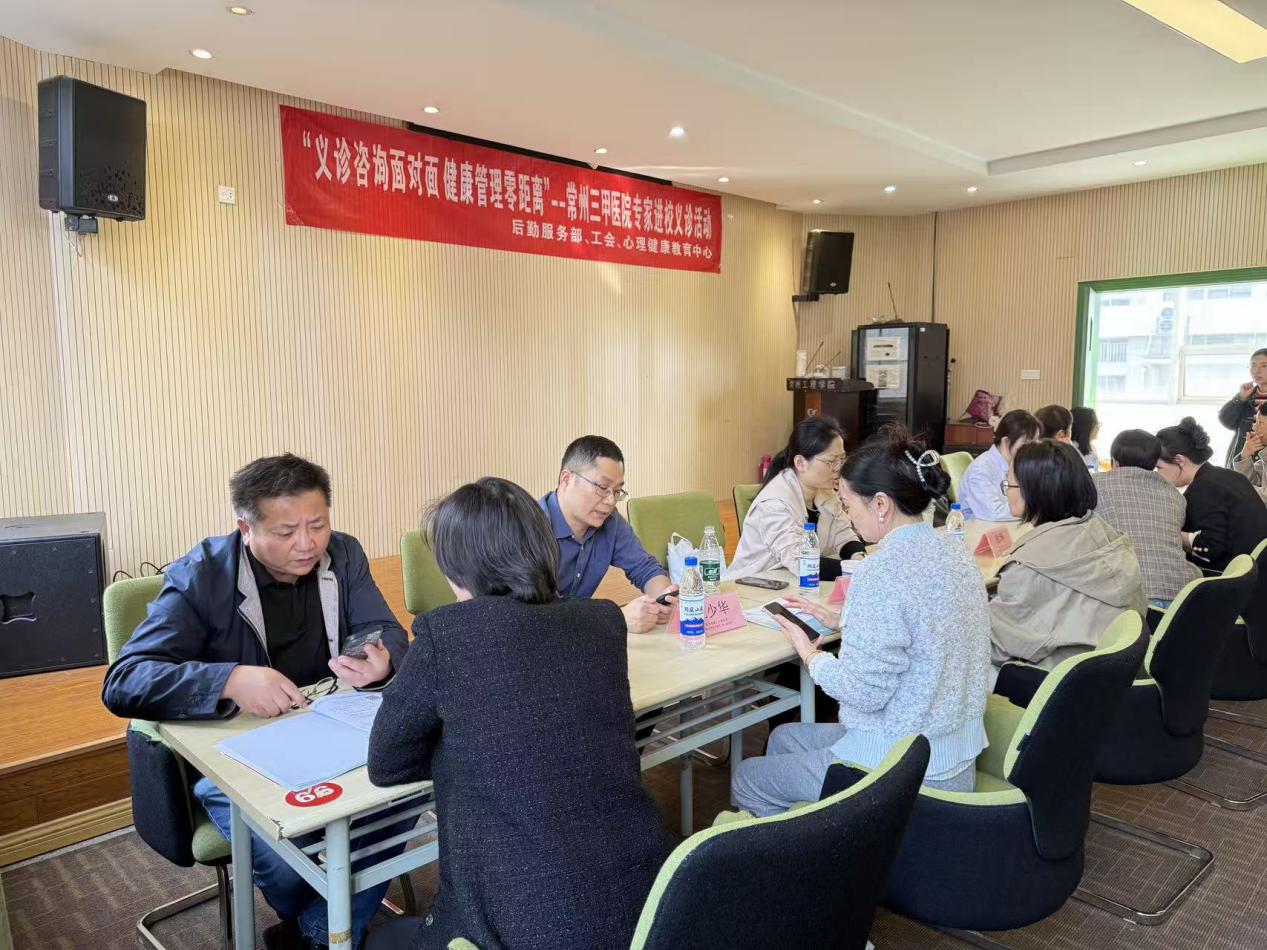 为提升全体教职工的健康意识,进一步推动校内健康服务的精准化、常态化,10月29日下午,学校特邀常州一院健康管理中心和阳湖二院体检中心的专家团队来校开展义诊咨询活动。来自消化内科、呼吸与危重症医学科、妇科、内分泌科、影像科等多个专科的权威医生现场为教职工提供健康评估、疾病预防及个性化管理建议。专家们结合教职工的体检报告,详细解答了常见的健康困惑,并针对不同人群提出针对性的检查与调理方案。