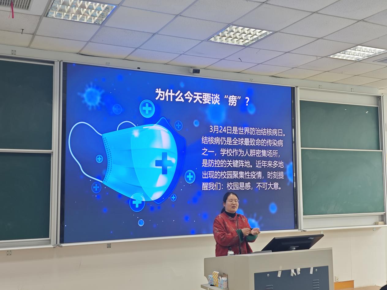 2026年3月24日是第31个“世界防治结核病日”,宣传主题为“全面行动 全力投入 全民参与 终结结核”。为提升我校学生科学防治结核的能力,筑牢校园健康防线,3月25日下午学校后勤服务部联合心理健康教育中心特邀武进区疾病预防控制中心慢性传染病防制科姜虹科长来校开展专题讲座。
